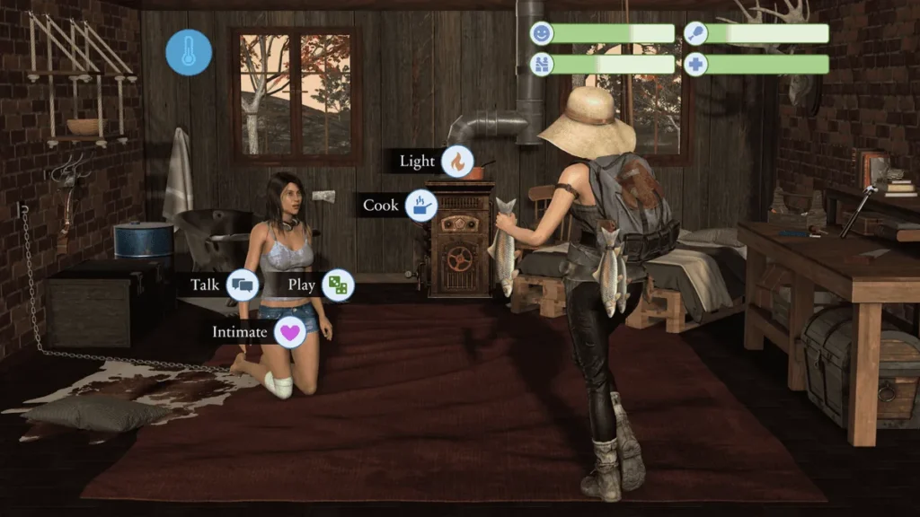 The Roleplay Layer: 📚 Inside the cabin, your time is spent with Anya. The game presents you with daily activity choices that drive her development and your relationship. This is where the adult, uncensored nature of the game comes into play, handled with a surprising amount of tenderness and purpose. You’ll use flashcards to teach her speech. You’ll guide her through hygiene routines. As trust builds, you can explore basic human anatomy lessons to help her understand her own body. A simple act like holding her hand to calm her during a thunderstorm can be a monumental story beat. These aren’t gratuitous scenes; they are the building blocks of humanity.